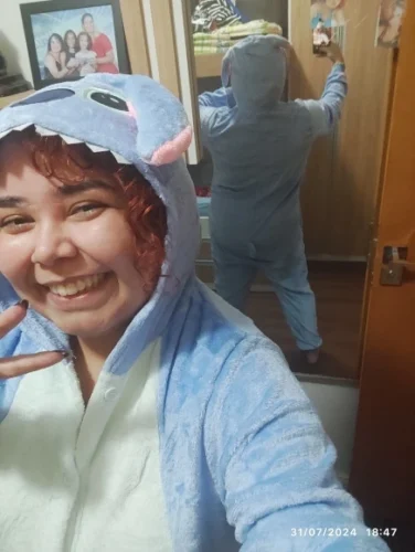 Slip into ultimate relaxation with our blue Stitch fleece pajama, crafted from soft and thick flannel for maximum comfort. Inspired by everyone’s favorite mischievous character, its playful design brightens up your downtime. The easy-zip front lets you get ready in no time, and the versatile material is perfect for winter, fall, or spring. Wear it around the house or out for a relaxed errand run—this pajama has you covered. With multiple sizes on offer, it provides a cozy cocoon-like experience for every body type. Go ahead and treat yourself to a moment of pure warmth and happiness!